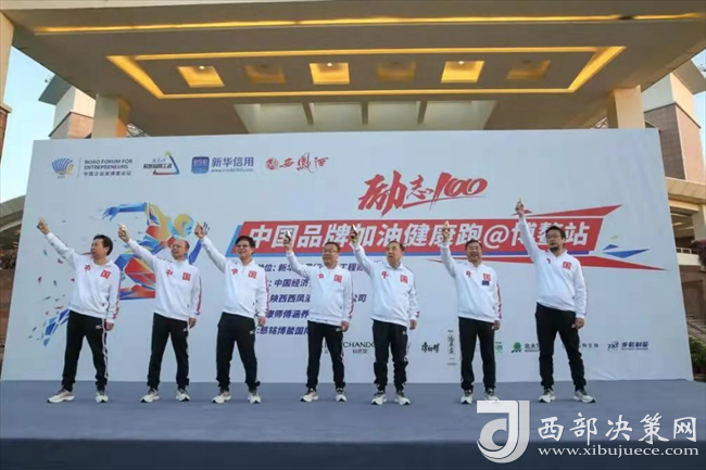 張正等5位嘉賓共同為西鳳酒協(xié)辦的“勵志100”中國品牌加油健康跑鳴響發(fā)令槍