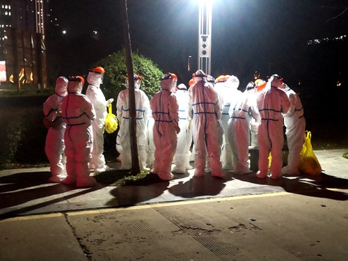 采完最后一戶,王敏娟下樓時眼前突然發(fā)黑,直接暈倒摔了一跤。同事急忙攙扶起她,在原地休息了十分鐘左右,人才緩過來。王敏娟感覺右腿疼的動不了,就給她同在一個單位的丈夫打電話,但是丈夫也在一線為住院病人采集核酸樣本,不能離開。