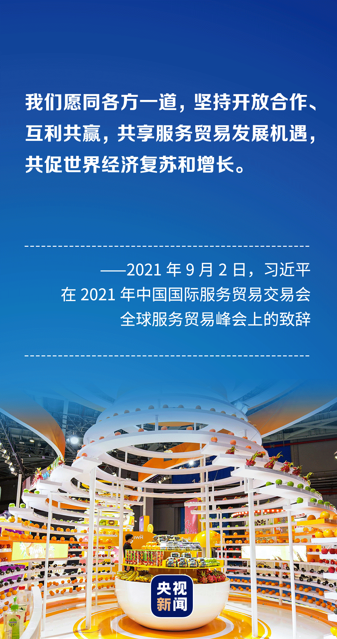 今年9月,習(xí)近平主席在2021年中國(guó)國(guó)際服務(wù)貿(mào)易交易會(huì)全球服務(wù)貿(mào)易峰會(huì)上發(fā)表視頻致辭,呼吁堅(jiān)持用和平、發(fā)展、合作、共贏的“金鑰匙”,破解當(dāng)前世界經(jīng)濟(jì)、國(guó)際貿(mào)易和投資面臨的問題。