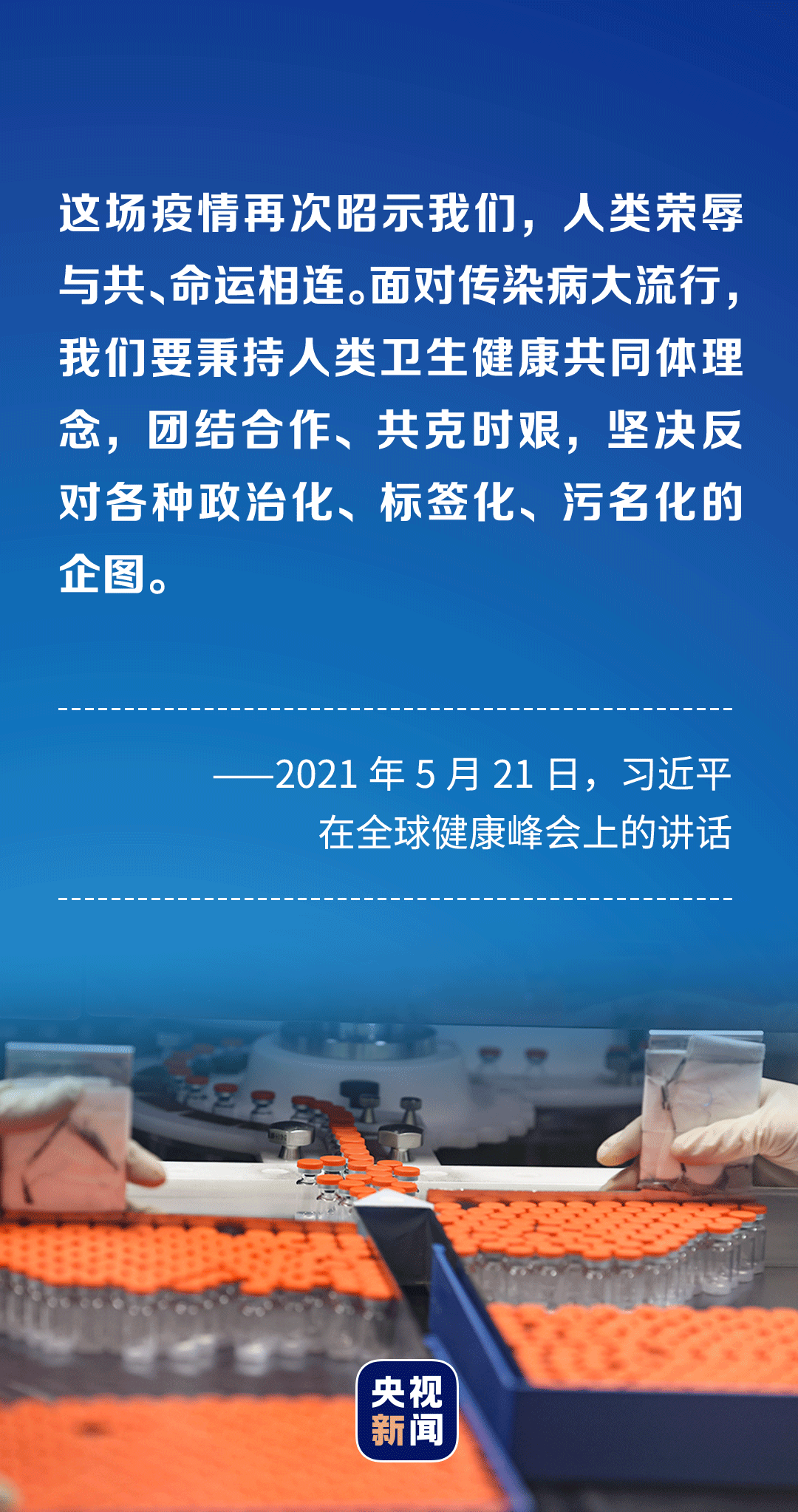 “疫情再次證明,我們生活在一個(gè)地球村,各國(guó)休戚相關(guān)、命運(yùn)與共。我們必須團(tuán)結(jié)合作、共克時(shí)艱,共同守護(hù)人類健康美好未來(lái)。”