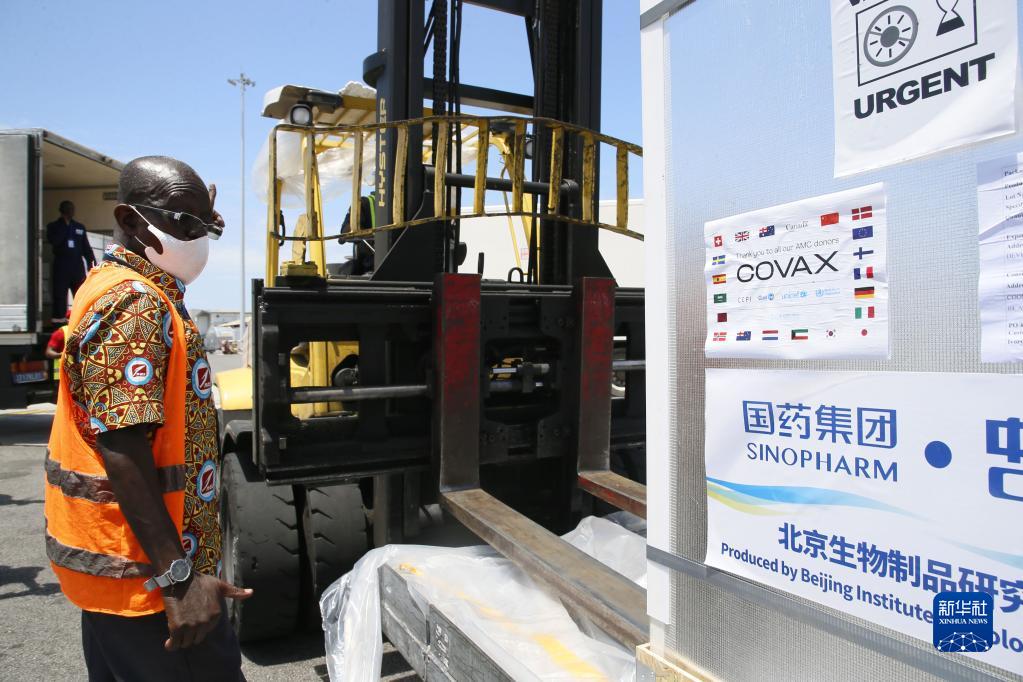 工作人員在科特迪瓦阿比讓國(guó)際機(jī)場(chǎng)搬運(yùn)中國(guó)國(guó)藥集團(tuán)通過(guò)“新冠疫苗實(shí)施計(jì)劃”供應(yīng)科特迪瓦的新冠疫苗(2021年9月18日攝)。新華社發(fā)(伊萬(wàn)·宋攝)