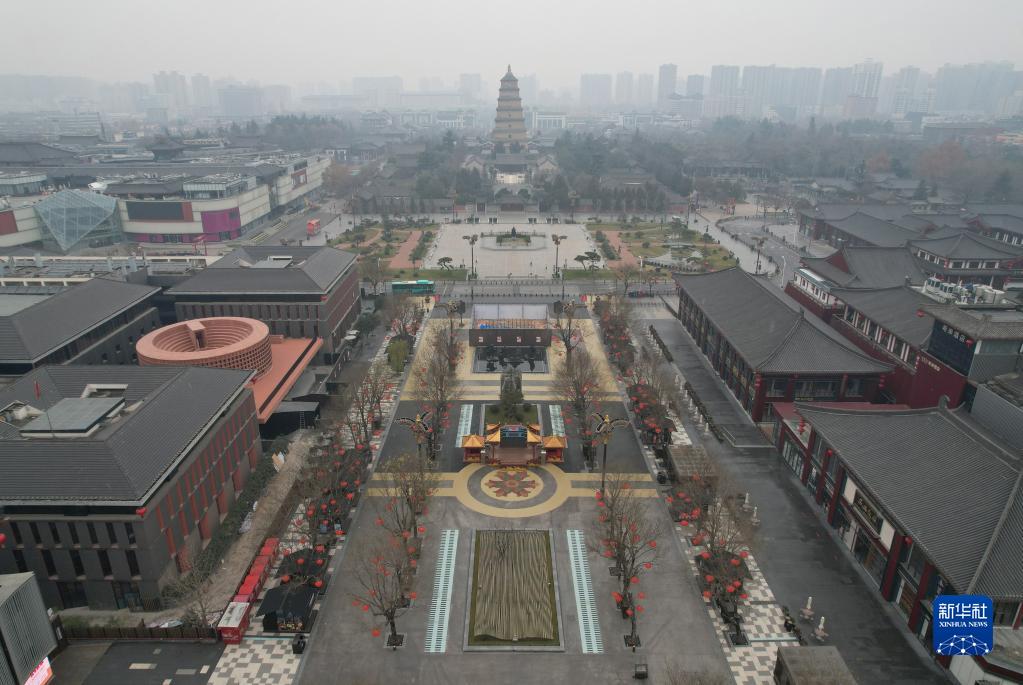12月23日拍攝的西安大唐不夜城步行街(無(wú)人機(jī)照片)。新華社記者 邵瑞 攝