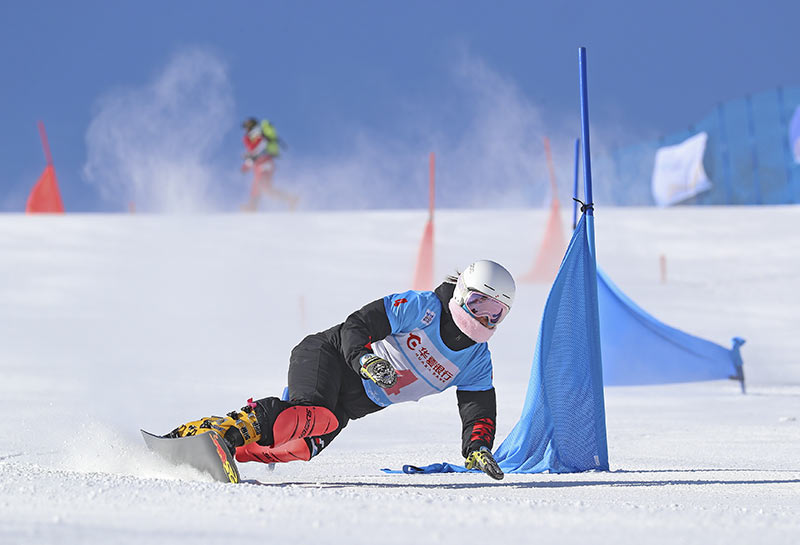 2021年2月17日,運動員在北京冬奧會張家口賽區(qū)崇禮云頂滑雪公園訓練,備戰(zhàn)2022年北京冬奧會。