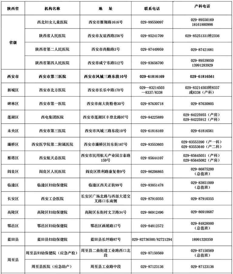 陜西省應(yīng)急助產(chǎn)機構(gòu)(部分)