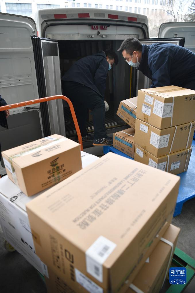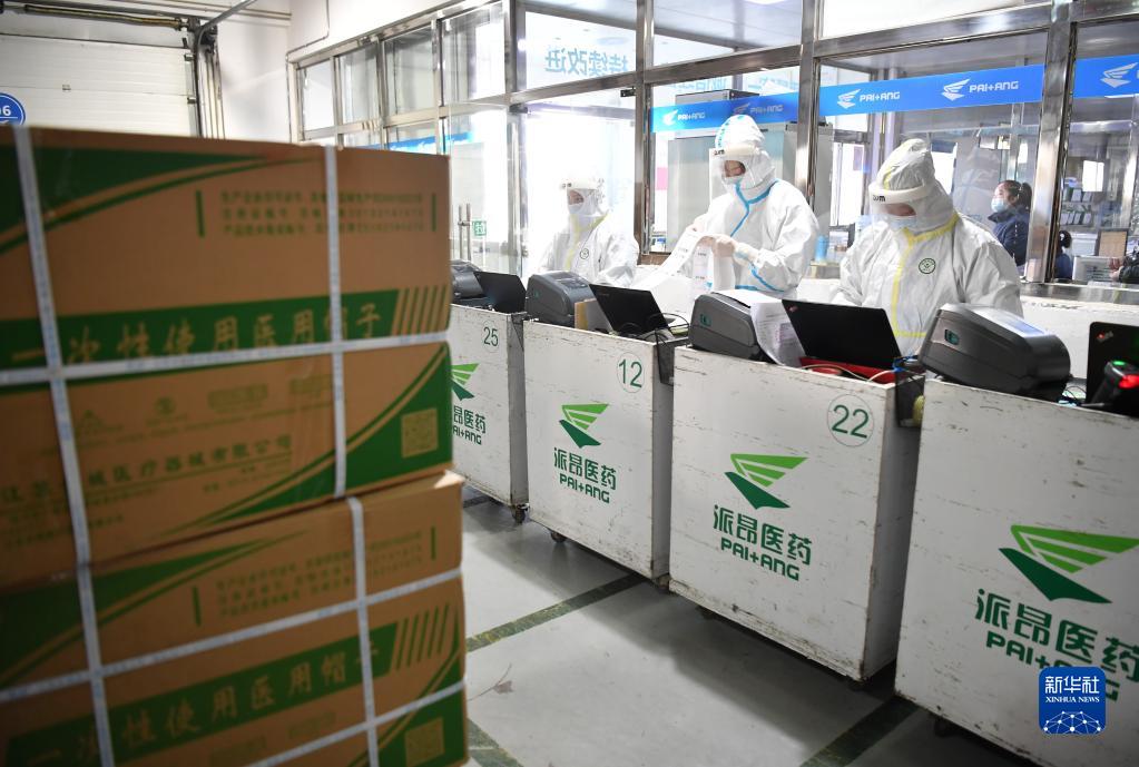 12月28日,陜藥集團派昂醫(yī)藥公司工作人員準(zhǔn)備對藥品進行派送。新華社記者 邵瑞 攝