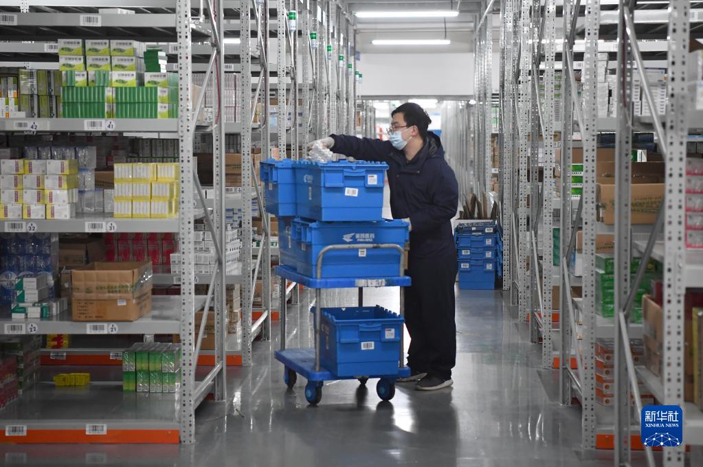 12月28日,在陜藥集團派昂醫(yī)藥公司倉庫內(nèi),工作人員對藥品進行拆零分揀。新華社記者 邵瑞 攝