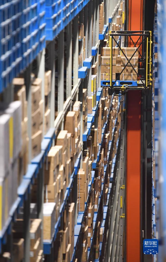 在陜藥集團派昂醫(yī)藥公司的立體庫內(nèi),藥品通過堆垛機入庫(12月28日攝)。新華社記者 邵瑞 攝