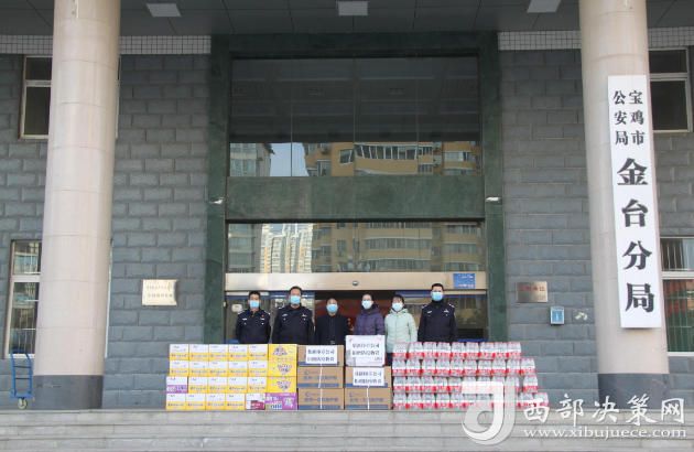西部決策網訊(記者帥華鋒 通訊員 寧鵬)疫情無情,人間有愛!12月29日下午,寶雞市鼎新印章制作有限公司白建莉經理一行4人來到寶雞市金臺公安分局,為金臺分局一線民輔警捐贈價值1萬余元防疫物資,助力金臺公安抗擊疫情。受副區(qū)長、分局黨委書記、局長鄒天虎委托,分局黨委委員、副局長陳永亮,分局黨委委員常廣利,警務保障室主任路軍縣接受愛心企業(yè)的捐贈。