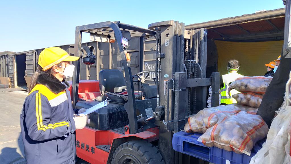 西安鐵路局西安西站貨物裝卸人員正在抓緊卸車。(照片由受訪者提供)