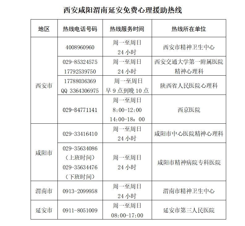 省新冠肺炎疫情醫(yī)療救治心理干預(yù)專家組,組建心理援助熱線工作團(tuán)隊(duì),24小時(shí)為疫情心理求助者提供心理援助服務(wù)。同時(shí),省衛(wèi)生健康委會(huì)同省政務(wù)服務(wù)中心在省12320衛(wèi)生熱線開通疫情心理援助熱線專席,依托陜西12345對全省有關(guān)疫情心理干預(yù)的訴求進(jìn)行引導(dǎo)和分轉(zhuǎn)。