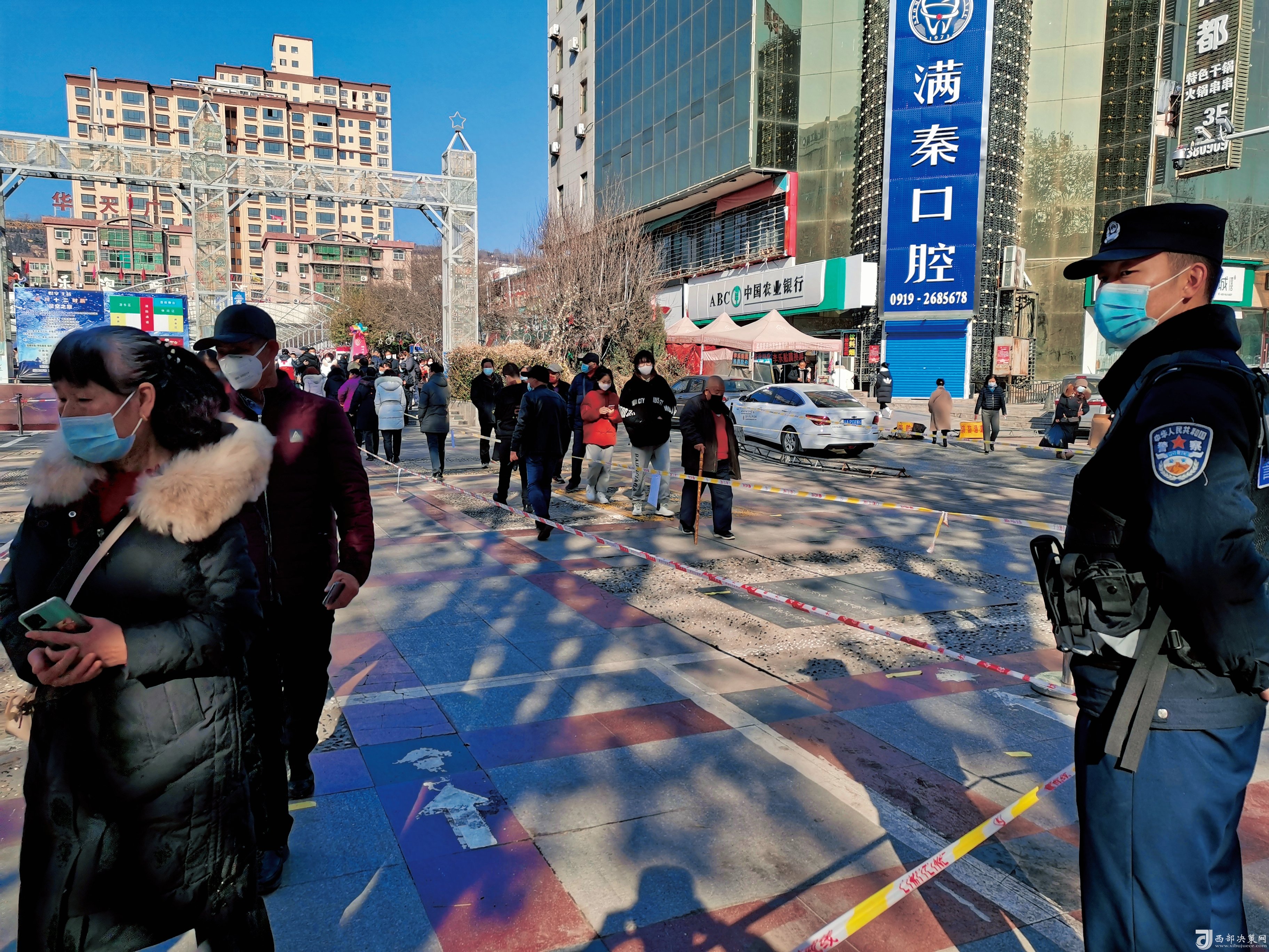 紅旗街派出所民警在華天廣場(chǎng)檢測(cè)點(diǎn)維持秩序