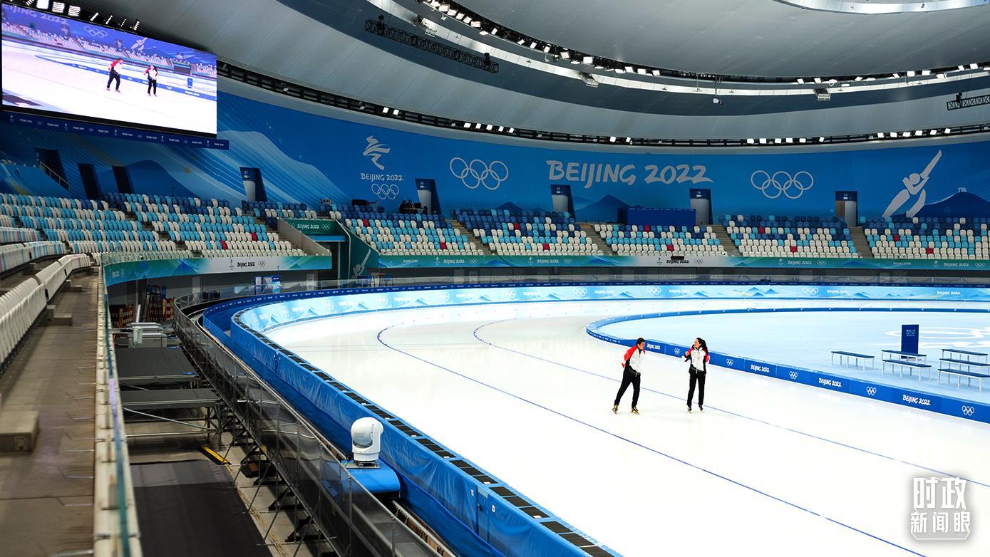△ “冰絲帶”能通過(guò)智慧管理實(shí)現(xiàn)館內(nèi)氣溫分層,同時(shí)保證冰面、運(yùn)動(dòng)員體溫體感以及觀眾席等不同環(huán)境的適宜溫度。(總臺(tái)央視記者王鵬飛拍攝)
