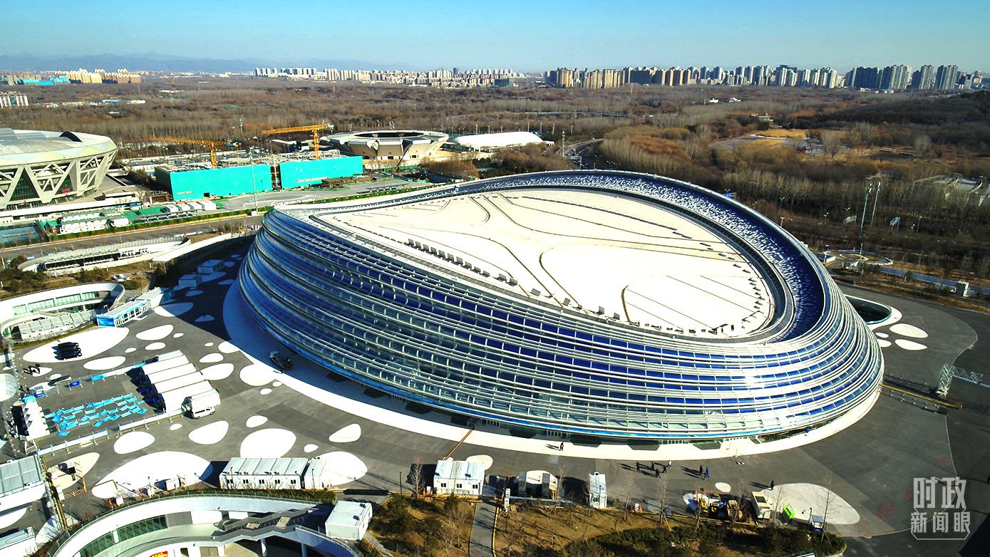 △國(guó)家速滑館從空中俯瞰呈馬鞍形,冬奧期間承擔(dān)速度滑冰項(xiàng)目的比賽,產(chǎn)生14塊金牌,是冬奧會(huì)產(chǎn)生金牌數(shù)量最多的單個(gè)場(chǎng)館。(總臺(tái)央視記者張曉鵬拍攝)