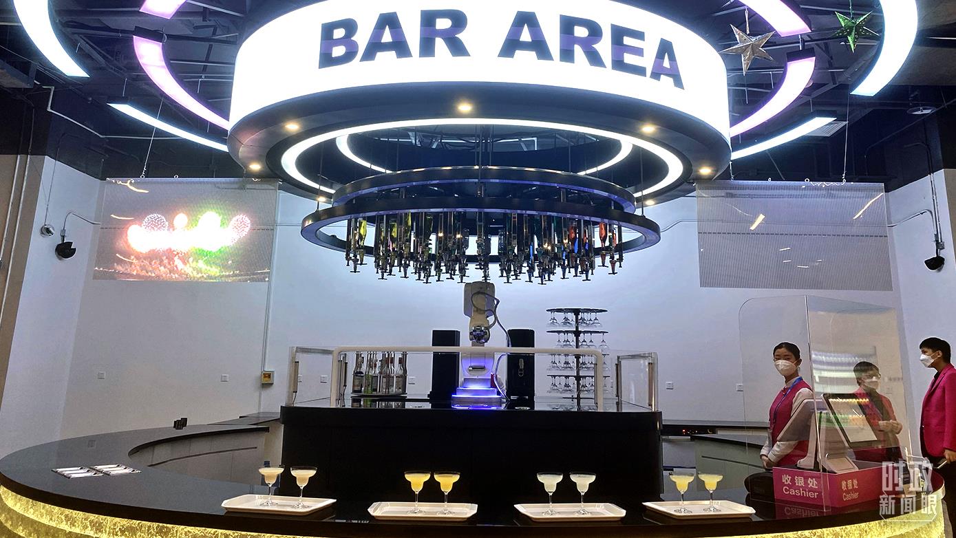 △這是機(jī)器人調(diào)酒吧臺(tái)。(總臺(tái)央視記者邢彬拍攝)