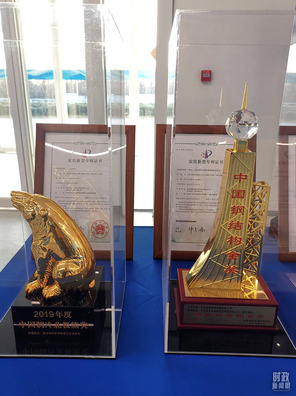 △2019年,“冰絲帶”分別榮獲中國(guó)制冷北極熊獎(jiǎng)和中國(guó)鋼結(jié)構(gòu)金獎(jiǎng)。(總臺(tái)央視記者楊立峰拍攝)