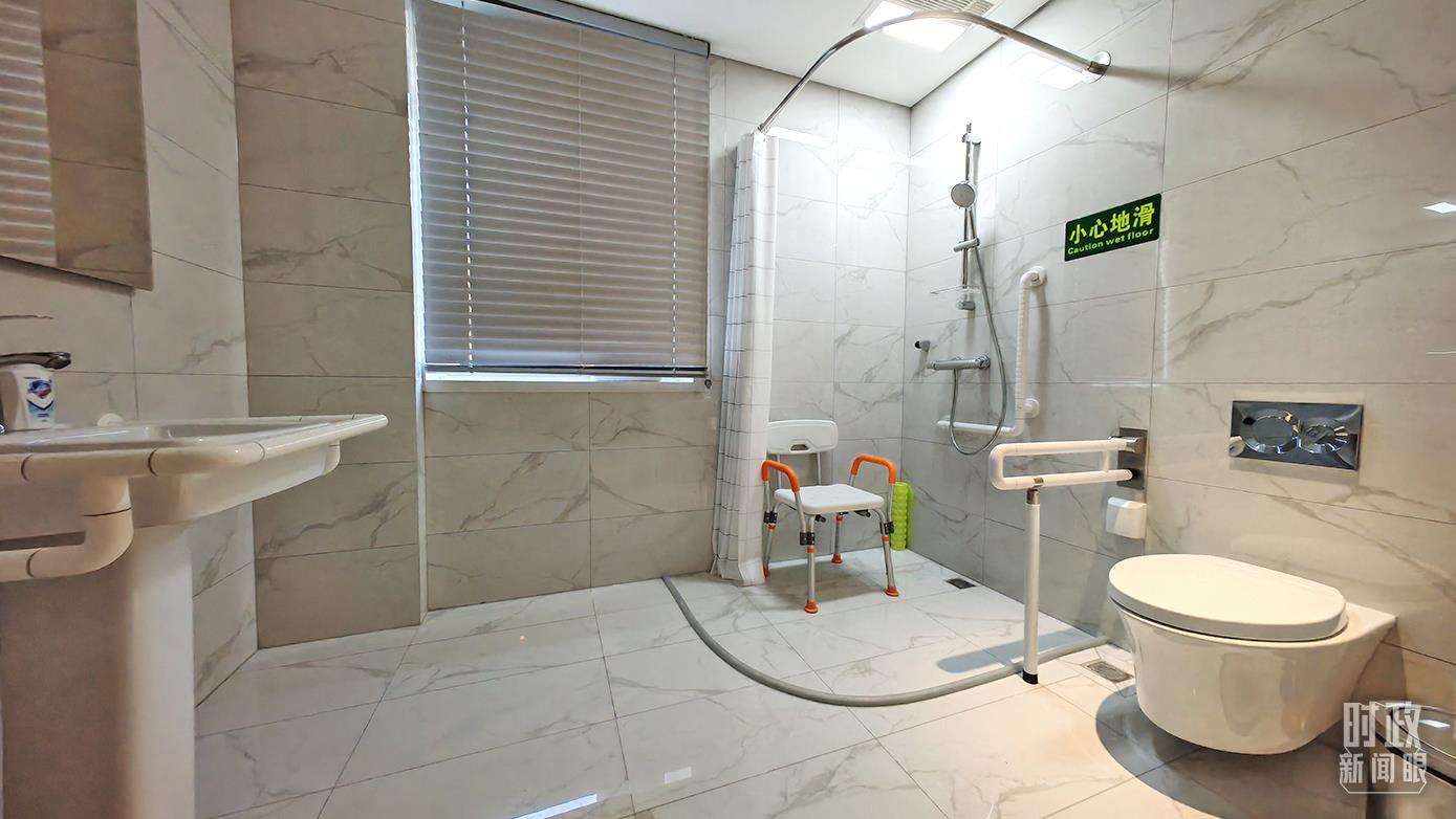 △這是運(yùn)動(dòng)員臥室,以及專(zhuān)為殘障運(yùn)動(dòng)員設(shè)置的衛(wèi)生間。(總臺(tái)央視記者郭鴻、彭漢明拍攝)