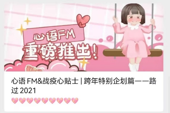 疫情防控期間,考慮到學(xué)生學(xué)習(xí)生活場所受限,學(xué)生情緒容易受到環(huán)境影響。心理健康教育中心通過新媒體開展“戰(zhàn)疫心貼士”、心語FM專欄,每天為該校學(xué)生推送疫情心理調(diào)節(jié)小妙招及各類心理援助資源。相繼發(fā)布的15篇推文有效地幫助學(xué)生們掌握了有關(guān)疫情的心理健康知識,學(xué)會了自我健心減壓,引導(dǎo)他們理性對待疫情,不恐慌、不信謠、不傳謠,保持良好心理狀態(tài)。