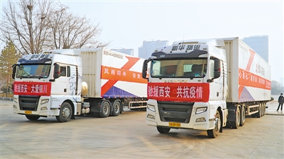 銀川援助西安市抗疫物資車隊嚴格遵照疫情防控要求,做好嚴格安全防護,帶著全市人民的深情厚誼,用實際行動助力西安人民共克時艱、共渡難關(guān)。(記者 王沛瑤)