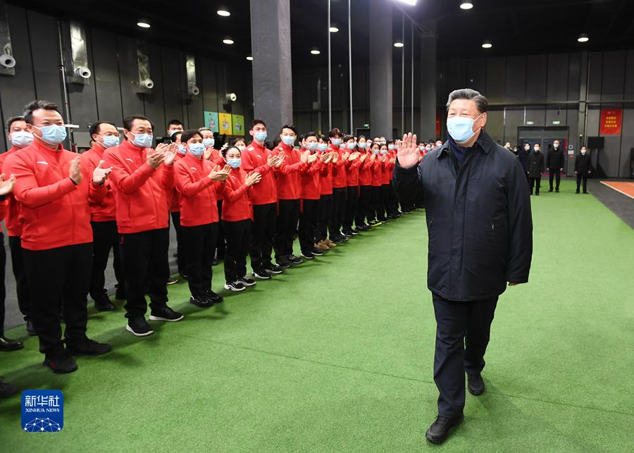 1月4日,中共中央總書記、國家主席、中央軍委主席習(xí)近平在北京考察2022年冬奧會、冬殘奧會籌辦備賽工作。這是4日下午,習(xí)近平在二七廠冰雪項(xiàng)目訓(xùn)練基地專項(xiàng)體能訓(xùn)練館,向運(yùn)動(dòng)員、教練員、服務(wù)保障人員揮手致意。新華社記者 謝環(huán)馳 攝