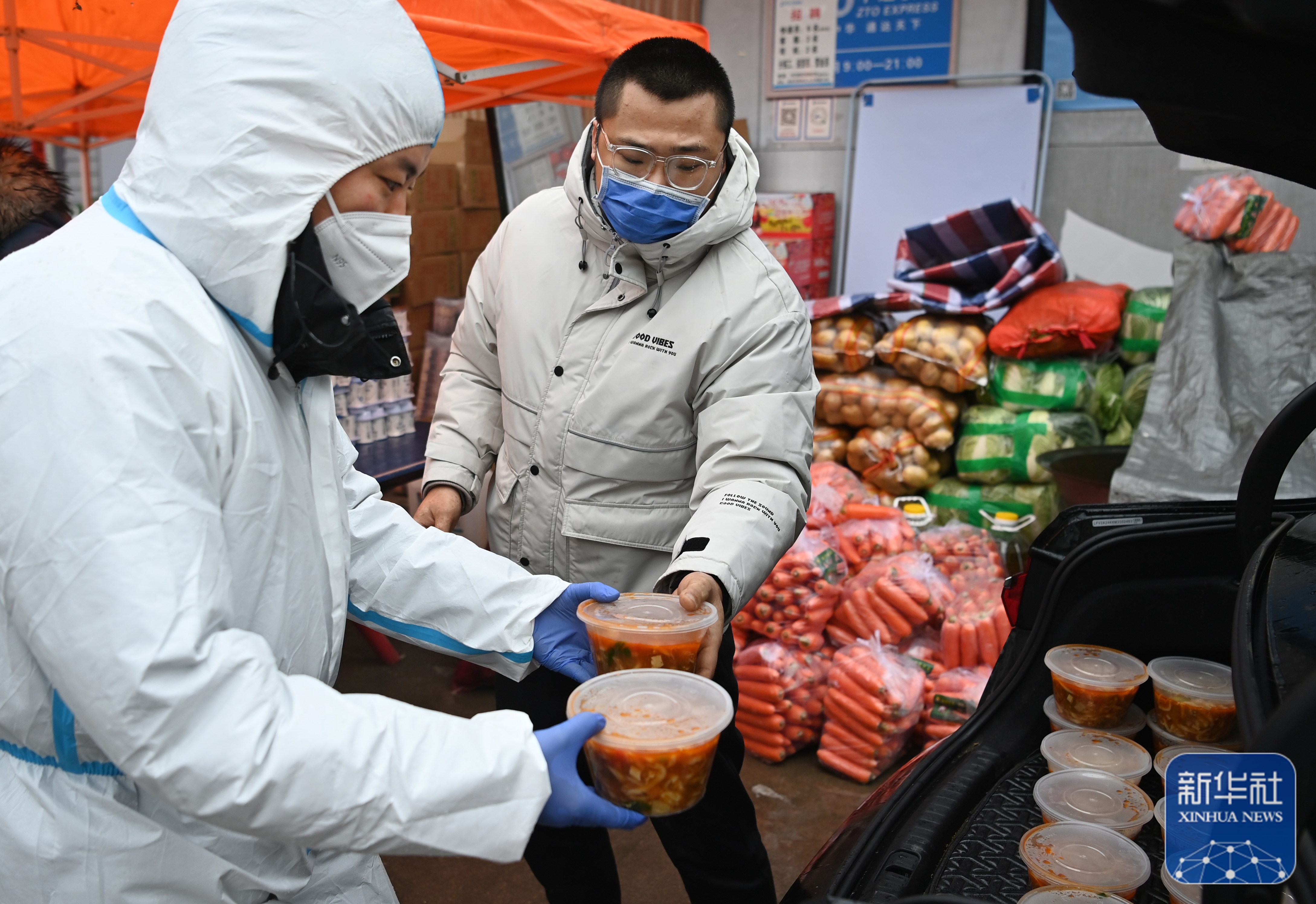 1月8日,志愿者在為防疫一線人員運(yùn)送“愛(ài)心餐”。