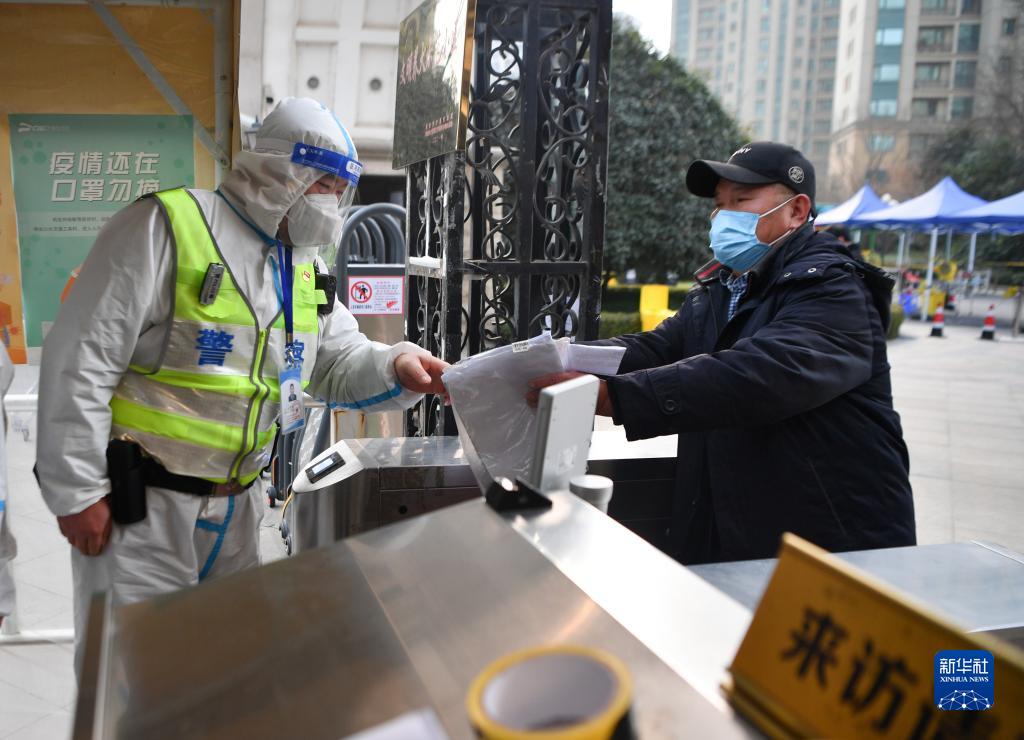 1月10日,西安市公安局新城分局民警在負(fù)責(zé)執(zhí)勤的社區(qū)向居民講解就醫(yī)流程。新華社記者 張博文 攝