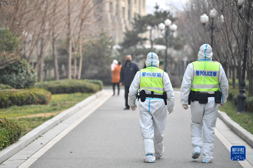 1月10日,西安市公安局浐灞生態(tài)區(qū)分局民警在轄區(qū)內(nèi)一社區(qū)執(zhí)行巡邏任務(wù)。新華社記者 張博文 攝