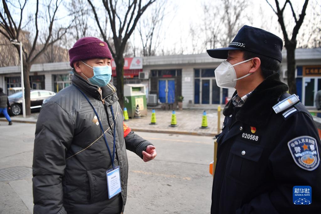 1月10日,西安市公安局新城分局民警在負(fù)責(zé)執(zhí)勤的社區(qū)與物業(yè)管理人員交流。新華社記者 張博文 攝