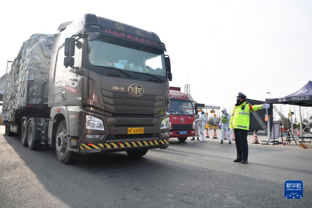 1月10日,西安市公安局交通警察支隊(duì)民警在西安市繞城高速河池寨收費(fèi)站指揮引導(dǎo)車輛通過(guò)。新華社記者 張博文 攝