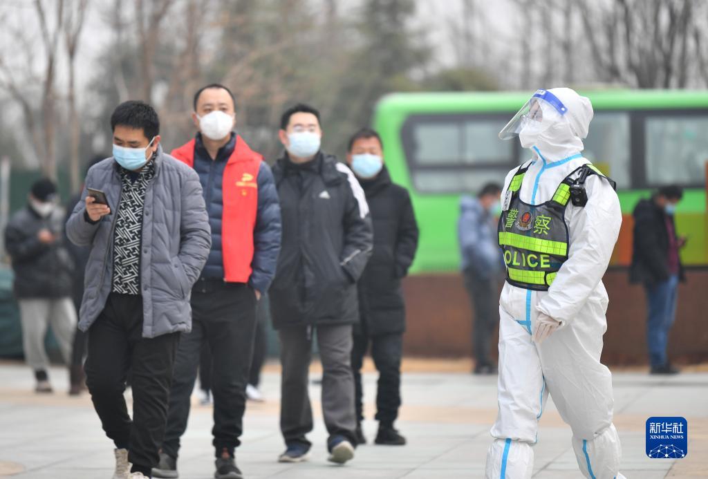 1月10日,西安市公安局浐灞生態(tài)區(qū)分局民警在轄區(qū)內(nèi)一處核酸檢測(cè)點(diǎn)執(zhí)勤。新華社記者 張博文 攝