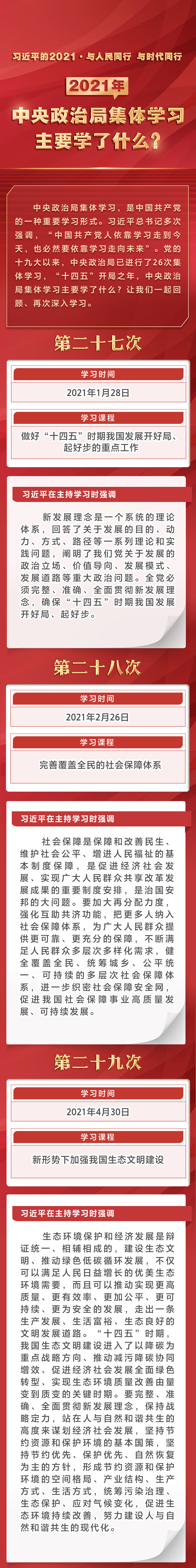 習(xí)近平的2021·與人民同行 與時代同行 2021年中央政治局集體學(xué)習(xí)主要學(xué)了什么?
