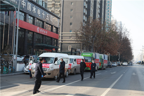 西部決策網(wǎng)訊 “出發(fā)!”1月11日下午14:00,隨著公司黨委書記、董事長梁向峰一聲令下,滿載 3000斤面粉、3000斤大米、 1000斤食用油、1000斤各類蔬菜、500斤大肉、200斤牛肉、200斤羊肉、400箱牛奶酸奶、500斤速凍水餃、1000箱衛(wèi)生紙、2200瓶洗發(fā)露、2200袋洗衣液等抗疫生活物資的8輛貨車,再次從中國水電十五局水電大廈樓前出發(fā),送往陜西職業(yè)技術(shù)學(xué)院。