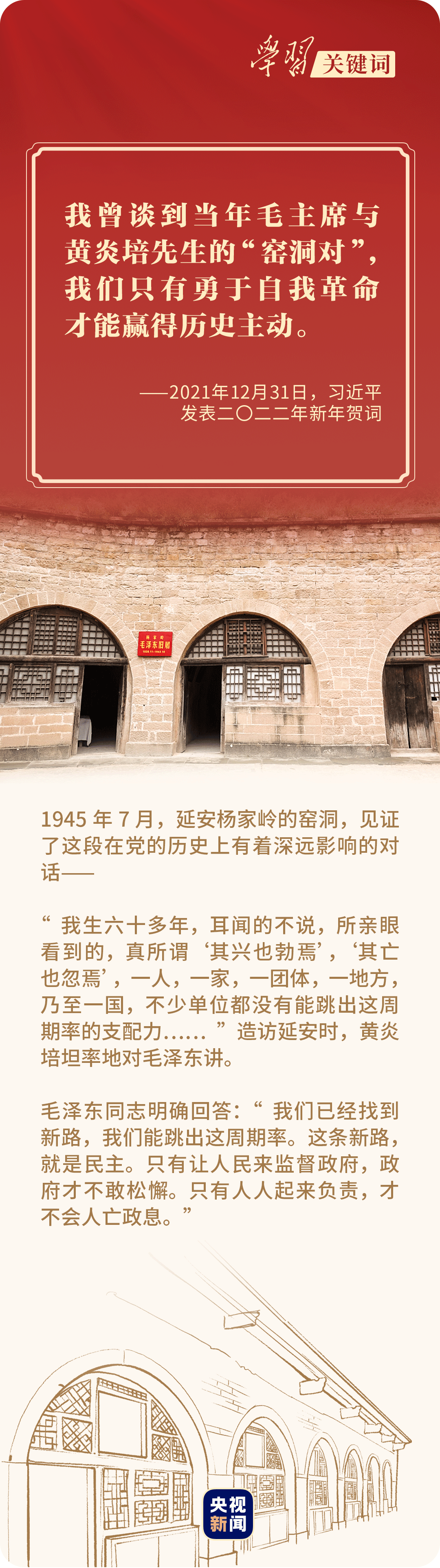 時(shí)時(shí)警惕、刻刻警醒,昔日窯洞一對(duì),久久回響在“趕考”路上。