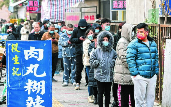 ▲1月20日,市民在西安市未央?yún)^(qū)一家小吃店前排隊購買食品。自1月19日起,西安市曲江新區(qū)、未央?yún)^(qū)、經(jīng)開區(qū)、浐灞生態(tài)區(qū)、國際港務(wù)區(qū)陸續(xù)迎來解封。新華社記者陶明攝