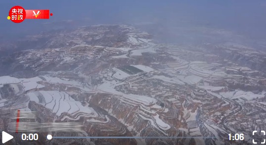 △雪后的黃土高原,梯田紋理清晰可見,如畫一般。(總臺記者康曉宇、朱銳峰拍攝)