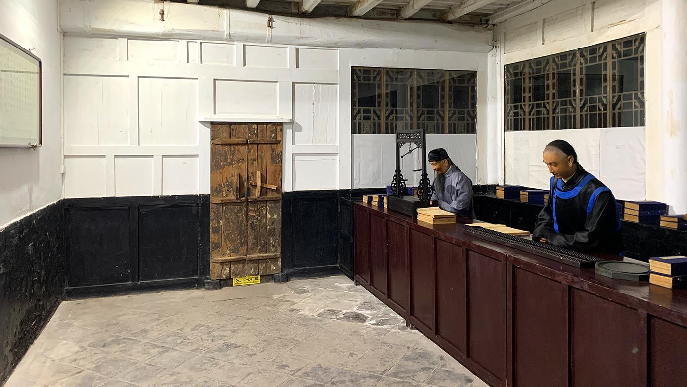 △日昇昌記內(nèi),還原了票號(hào)當(dāng)年對(duì)外營(yíng)業(yè)的柜房環(huán)境。(總臺(tái)央視記者 段德文拍攝)