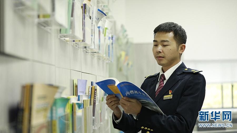 云南山多、彎多,且橋梁多、曲線多、坡度大,在這樣的山區(qū)鐵路上,把火車開得平穩(wěn)可不是一件容易事兒。于是胡堅(jiān)每次上班都帶著專業(yè)書籍,一有時(shí)間就拿出來翻,遇到不懂的就追著師父楊學(xué)仁問。(新華網(wǎng) 范芳鈺/文 劉東/攝)