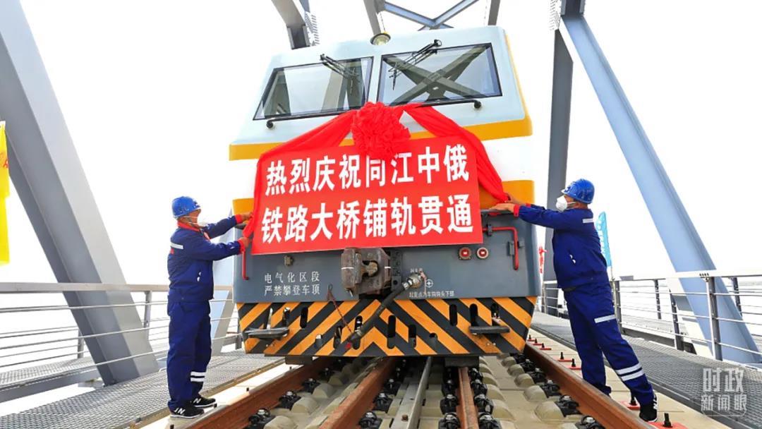 △2021年8月,黑龍江同江,中俄兩國首座跨江鐵路大橋?qū)崿F(xiàn)鋪軌貫通。(圖/視覺中國)