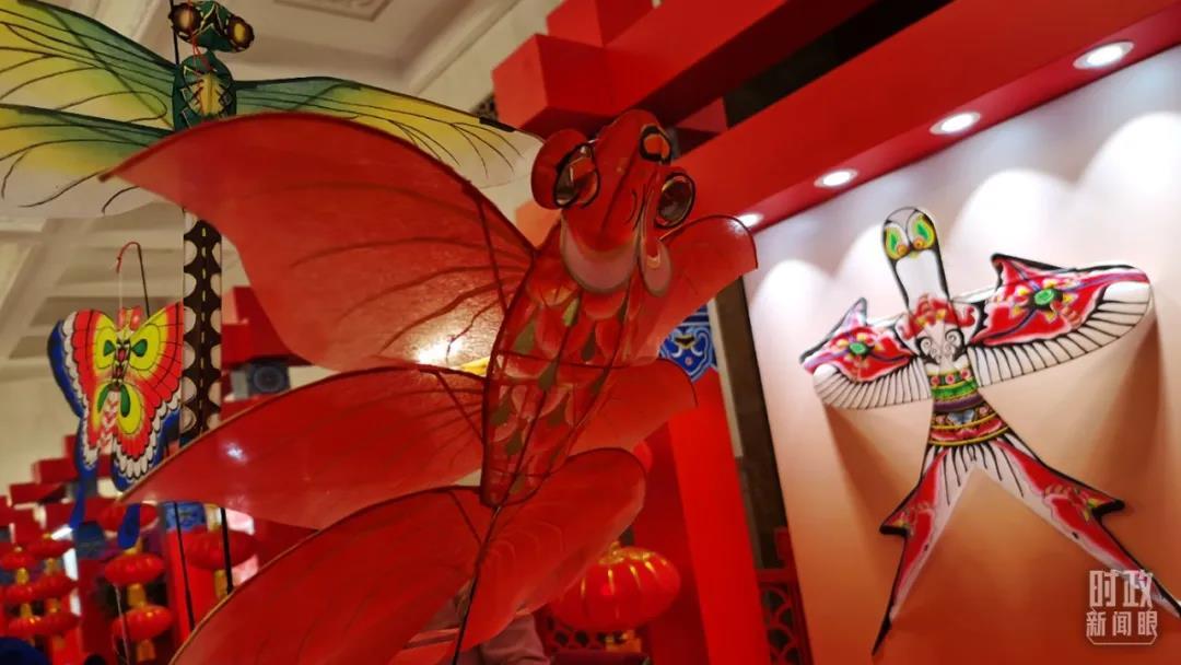 年畫、春聯(lián)、剪紙、風(fēng)箏、面塑、中國結(jié)、京劇臉譜、民樂合奏……這些從中國土地上長出來的非遺作品,匠心獨(dú)運(yùn)、光彩照人,讓短短數(shù)十米的廊道化身為精華版的中國“廟會”。