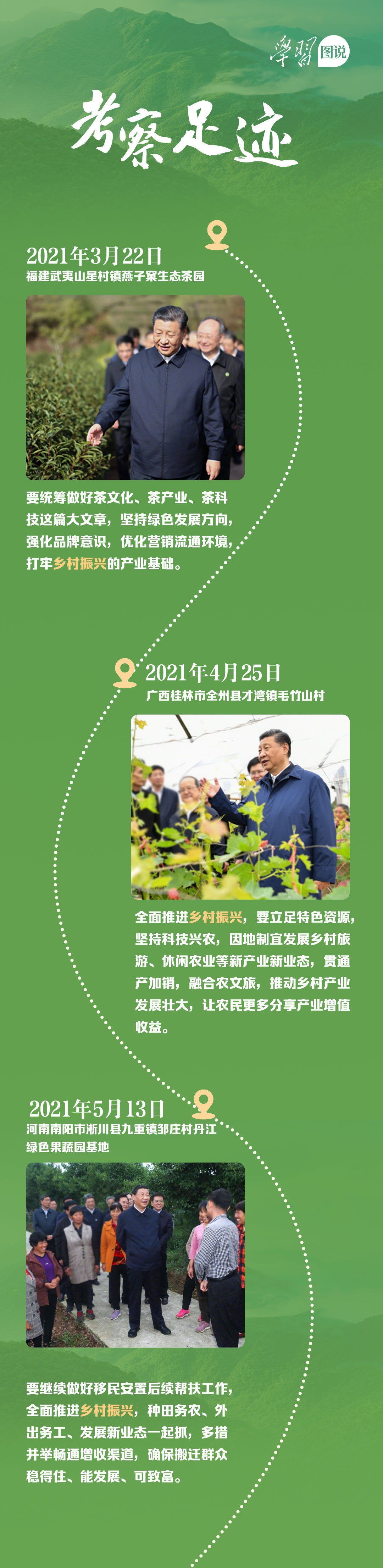 一年來(lái),習(xí)近平總書(shū)記心系鄉(xiāng)村振興,翻山越嶺、跋山涉水,問(wèn)農(nóng)民收成、看農(nóng)村變化、謀農(nóng)業(yè)發(fā)展,堅(jiān)實(shí)足跡印在祖國(guó)大地上,深切關(guān)懷留在百姓心間。