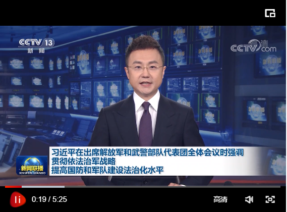 中共中央總書記、國家主席、中央軍委主席習近平7日下午在出席十三屆全國人大五次會議解放軍和武警部隊代表團全體會議時強調(diào),依法治軍是我們黨建軍治軍的基本方式,是實現(xiàn)黨在新時代的強軍目標的必然要求。要貫徹依法治軍戰(zhàn)略,提高國防和軍隊建設法治化水平,為推進強軍事業(yè)提供堅強法治保障。