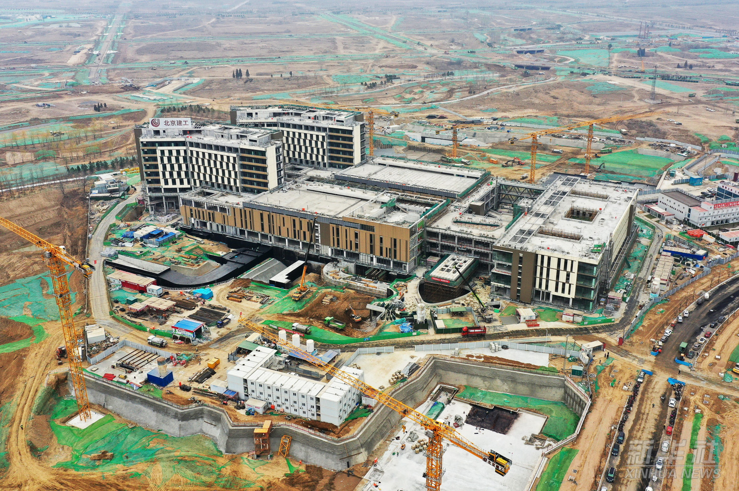 這是雄安新區(qū)首家三甲醫(yī)院——首都醫(yī)科大學(xué)宣武醫(yī)院雄安院區(qū)項目建設(shè)施工現(xiàn)場(無人機照片,2022年3月29日攝)。該工程由北京市援建,總建筑面積12.2萬平方米,包括門診樓、醫(yī)技樓、住院樓、科研樓等,主體結(jié)構(gòu)于2021年8月封頂,建成后將成為擁有600張床位的獨立運行三級甲等醫(yī)院。