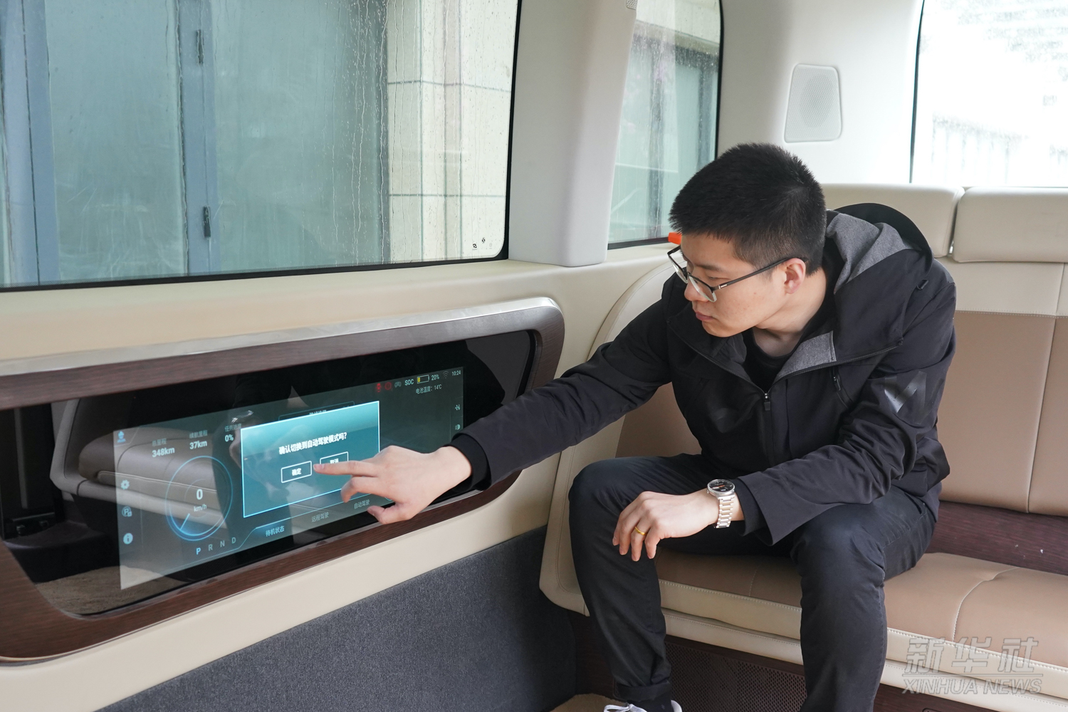 在雄安智繪未來科技園,雄安數(shù)字交通實驗室工作人員操控?zé)o人駕駛汽車進行自動駕駛(2021年3月26日攝)。