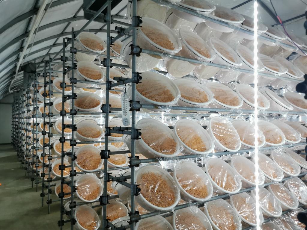 “工作人員可以根據(jù)蛹蟲草生長情況設(shè)置溫度等指標(biāo),還能實時查看通風(fēng)、光照等情況,實現(xiàn)智能培育。”在蛹蟲草生產(chǎn)車間門口,董建國指著一塊顯示屏說,得益于政府提供基礎(chǔ)設(shè)施配套、用工協(xié)調(diào)等支持,該公司發(fā)展快速,智能菇房已從去年的110間增加到目前的210間,去年產(chǎn)值超過1億元,今年預(yù)計將翻一番。