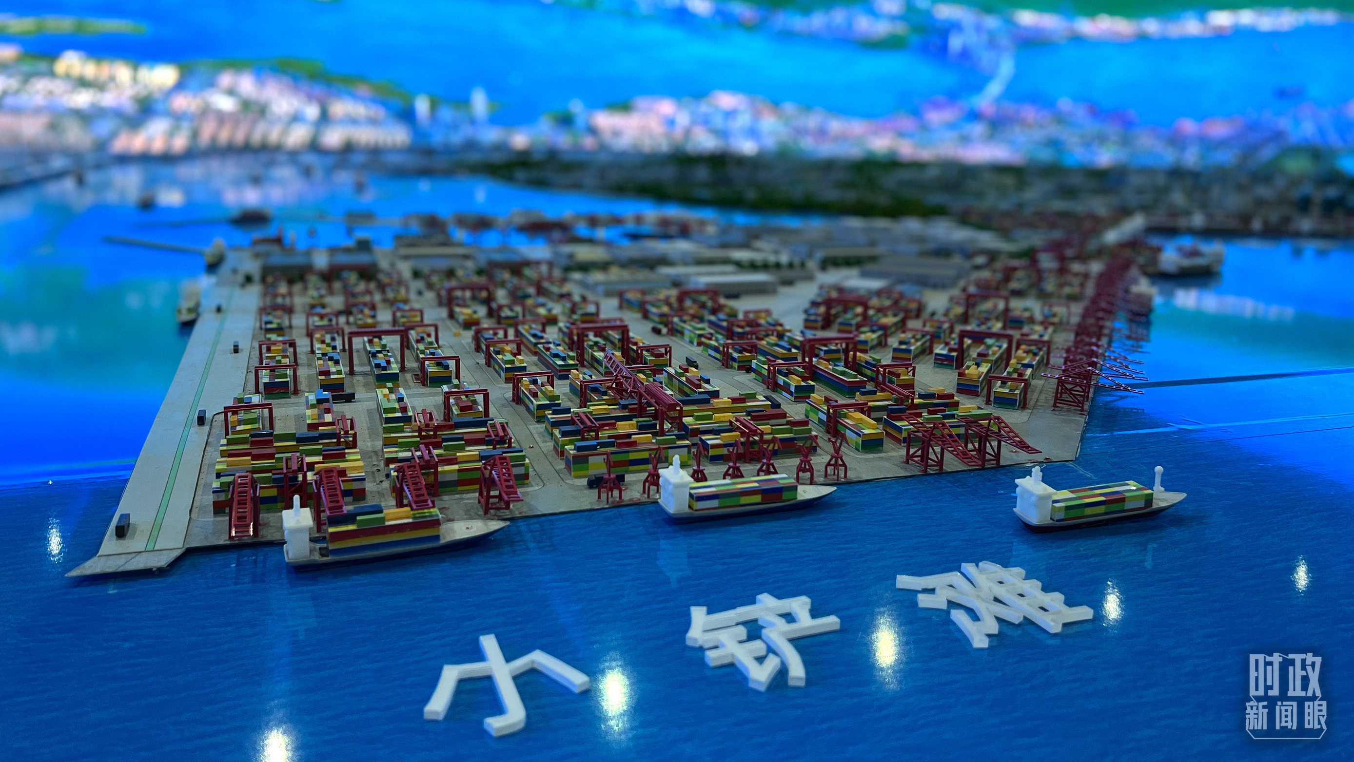 △洋浦展示館,小鏟灘港區(qū)模型。(總臺央視記者邢彬拍攝)