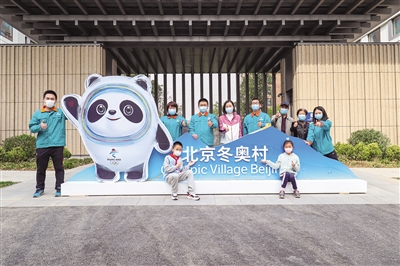 4月17日,北京冬奧村賽后首次開放,建設(shè)者代表及家屬在冬奧村合影留念。 本版攝影/新京報記者 陶冉