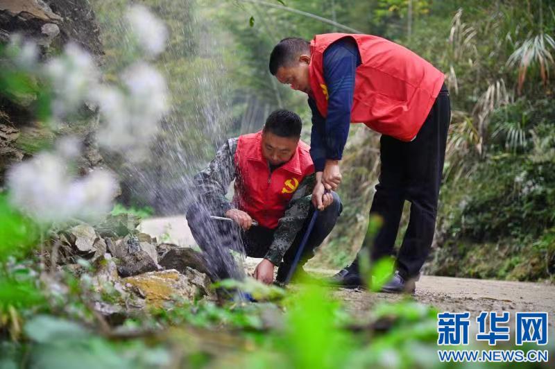 為保障春耕春灌,江西省宜春市袁州區(qū)新坊鎮(zhèn)組織志愿者對(duì)用水管道進(jìn)行重新檢修。新華網(wǎng)發(fā) 張文 攝