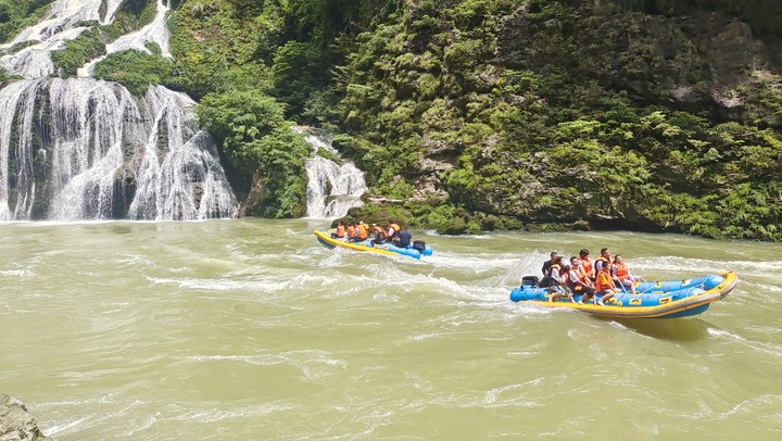 2022年5月3日,游人在湖南張家界茅巖河景區(qū)體驗漂流。 吳勇兵 攝