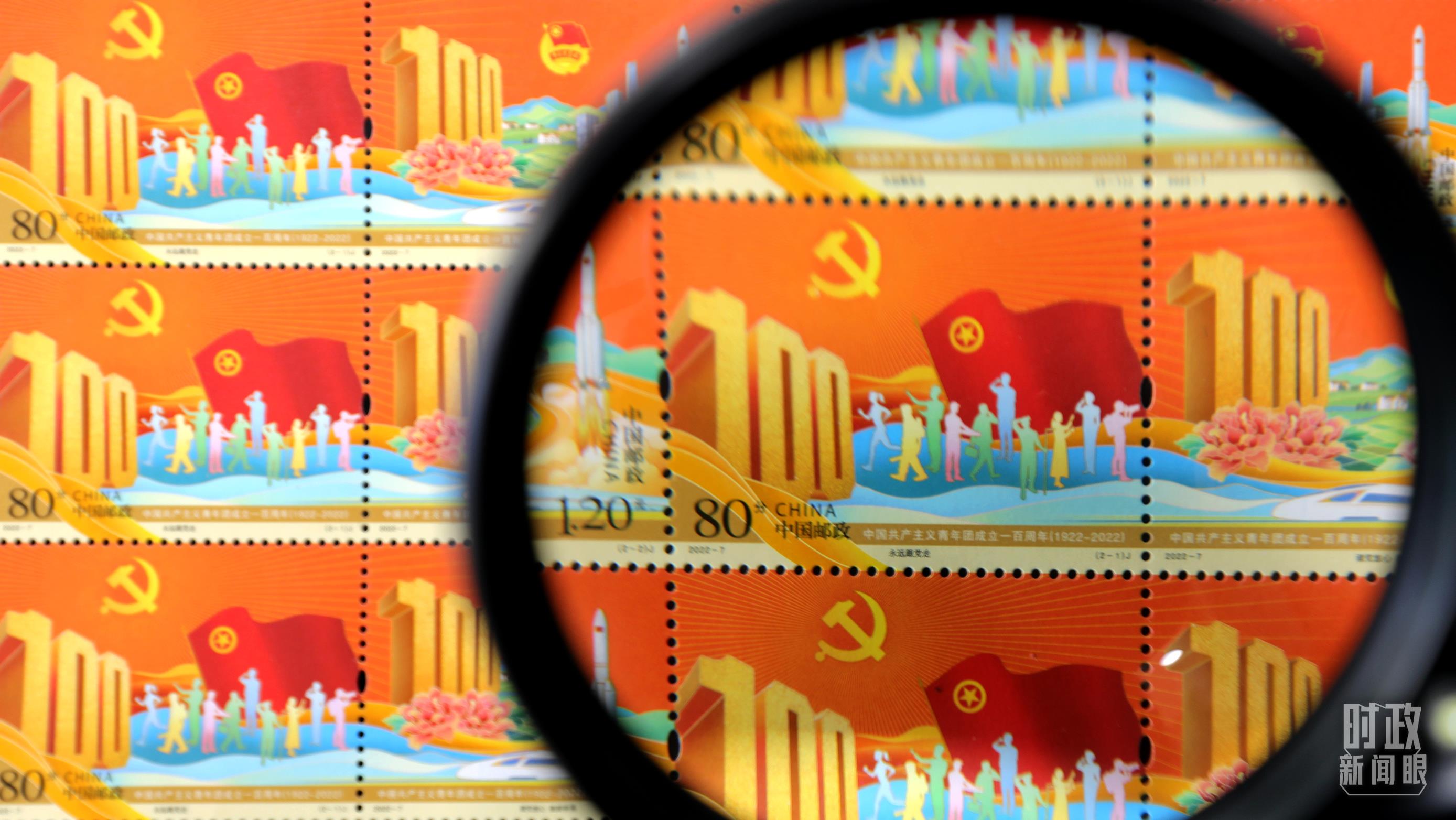 △2022年5月,中國郵政發(fā)行《中國共產(chǎn)主義青年團(tuán)成立一百周年》紀(jì)念郵票。(圖丨視覺中國)