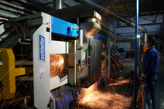 “90后”焊機(jī)操作手楊宇,左手快速擦去額頭上細(xì)密的汗珠,右手打開焊機(jī)艙門查看鋼軌焊接狀態(tài),只見兩根鋼軌的焊縫處“燒”的火紅,楊宇確認(rèn)無(wú)誤后,啟動(dòng)傳送輥道,第3根鋼軌也要在這里進(jìn)行焊接,直到5根100米母材焊接成500米長(zhǎng)鋼軌。