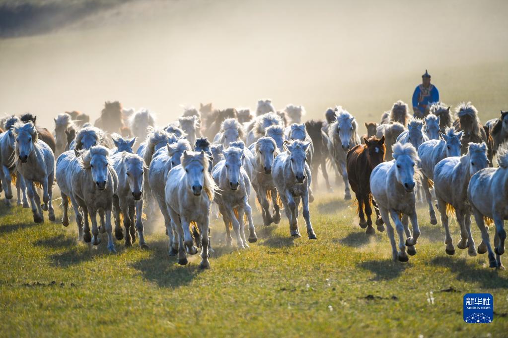 5月17日,錫林郭勒盟西烏珠穆沁旗的牧民在驅(qū)趕馬群。新華社記者 彭源 攝